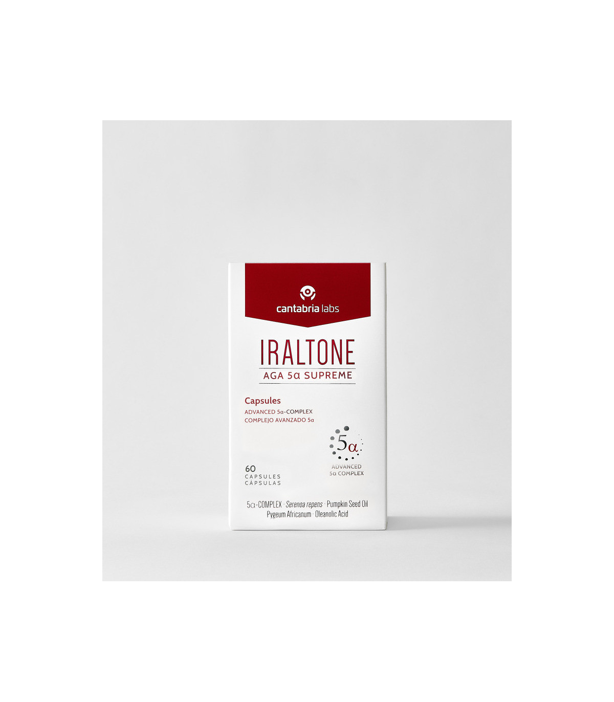Complemento alimenticio formulado con un complejo avanzado 5α formado por serenoa repens, aceite de semilla de calabaza, ciruelo africano y hoja de olivo rica en ácido oleanólico, obteniendo la mayor concentración de activos inhibidores de la 5α reductasa del mercado.