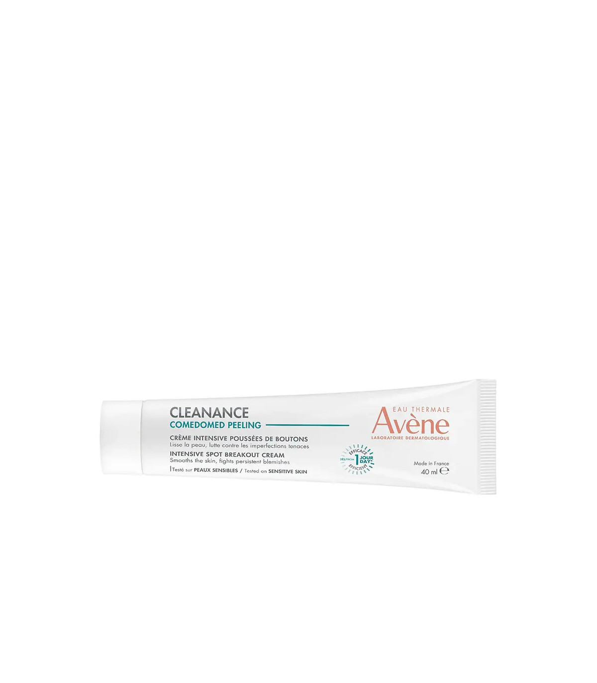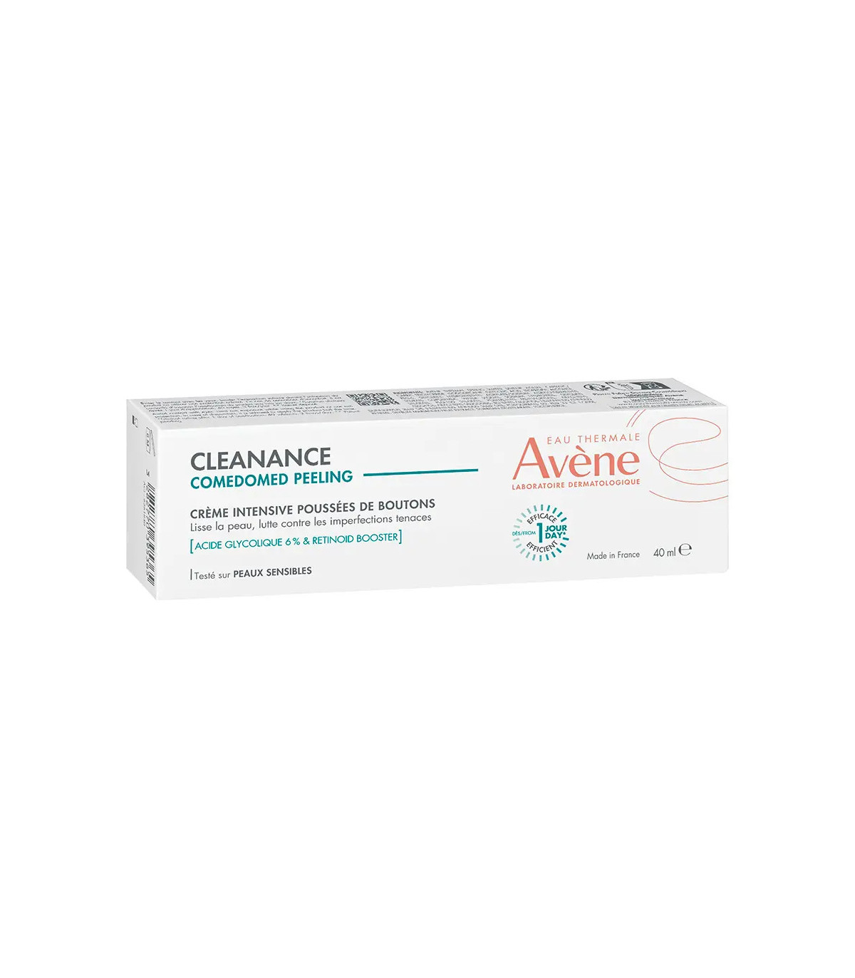 Cleanance Comedomed Peeling de Avène reduce el volumen y el enrojecimiento de los granos desde el primer día. Con un dúo patentado de activos, retinaldehído y Comedoclastin™, es un 50% más eficaz que el retinaldehído solo y está combinado con ácido glicólico. Esta crema actúa rápidamente en los brotes de granos, atacando las imperfecciones de las pieles con tendencia acneica. El ácido glicólico exfolia y estimula la renovación celular, mientras que el Retinoid Booster ayuda a la reabsorción de los granos y reduce las marcas residuales. Aplicar por la noche sobre el rostro limpio y seco al aparecer las imperfecciones, por un máximo de 15 días. Su textura cremosa se absorbe rápidamente, dejando un acabado no graso.