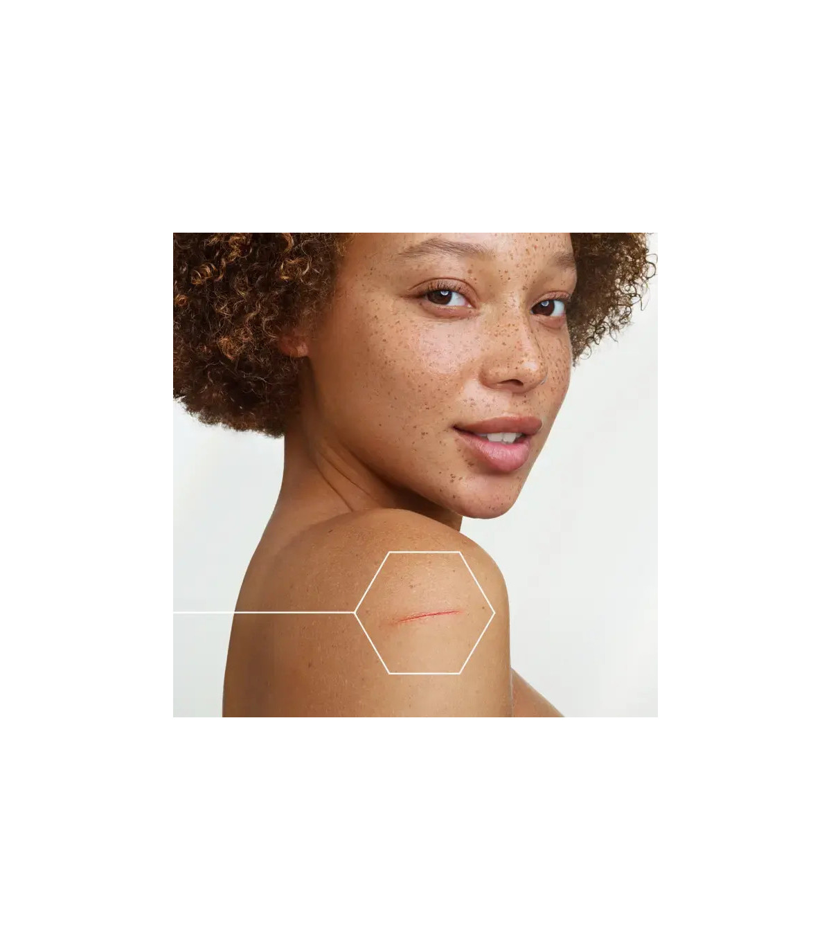 Esta crema reparadora antimarcas acelera la reparación¹ de la piel -6 días, ayuda a reducir la apariencia de las marcas y calma la sensación de disconfort de la piel.