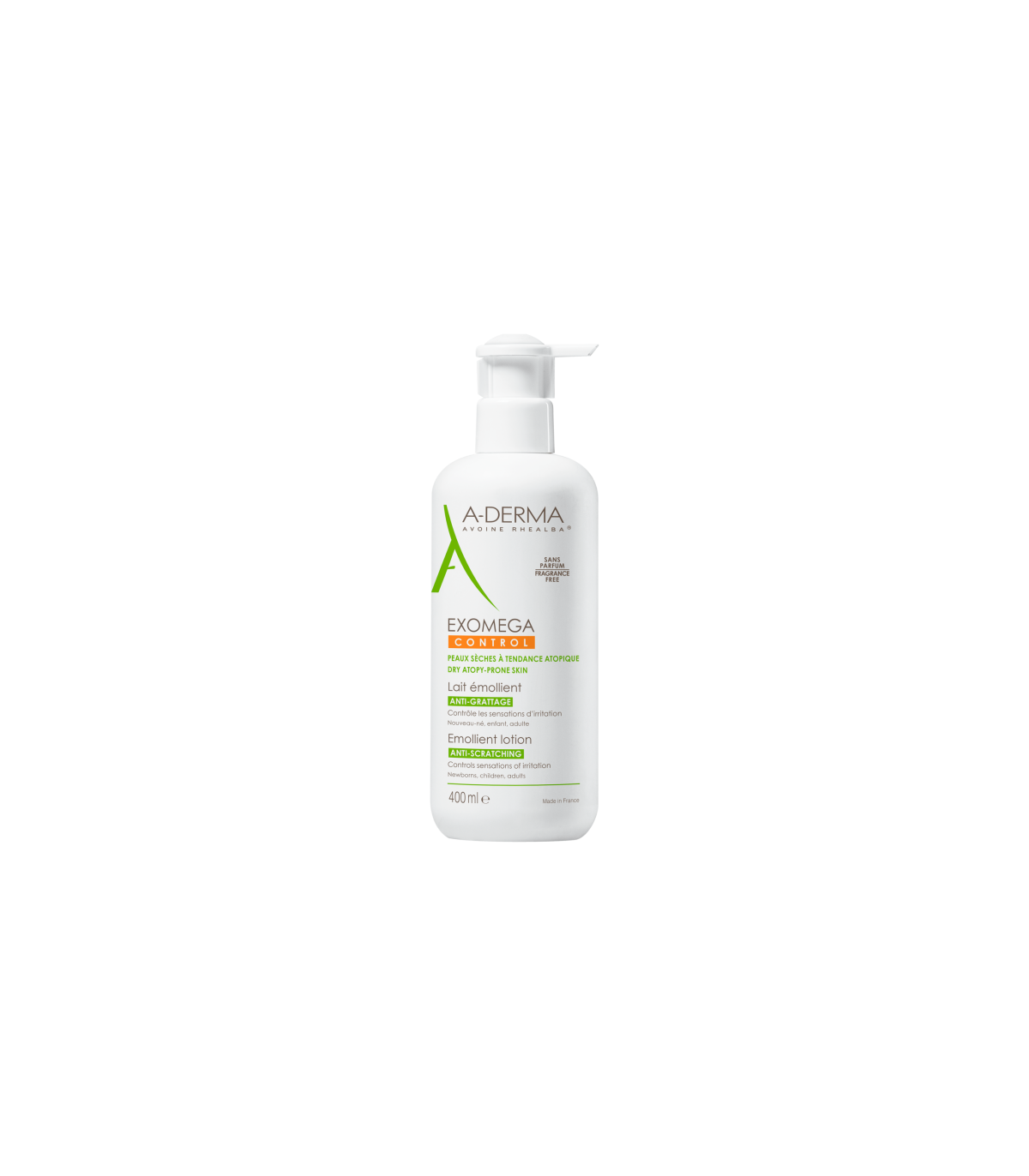 EXOMEGA CONTROL Leche emoliente anti-rascado está formulada para calmar, hidratar y restaurar la barrera cutánea en pieles secas con tendencia al eczema atópico. Su textura no grasa y de rápida absorción permite una aplicación cómoda y eficaz, recomendada para adultos, niños y recién nacidos.