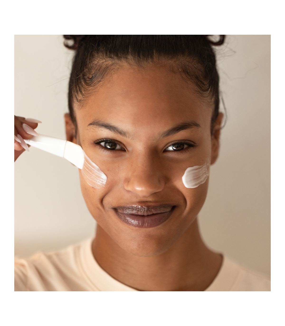 Con la piel limpia y completamente seca, aplica una fina capa de producto sobre el rostro con la brocha suave diseñada para potenciar la experiencia de autocuidado. Si tu piel está muy seca o deshidratada, puedes aplicar una capa más generosa. Déjala actuar unos minutos. Si antes de dormir queda producto sin absorber, masajea suavemente para facilitar su penetración. No es necesario aclararla: su fórmula está pensada para actuar durante toda la noche y aprovechar al máximo sus beneficios regeneradores. Tip extra: También puedes utilizarla durante una tarde en casa como tratamiento intensivo o antes de un evento para lucir una piel visiblemente más luminosa, suave y revitalizada.