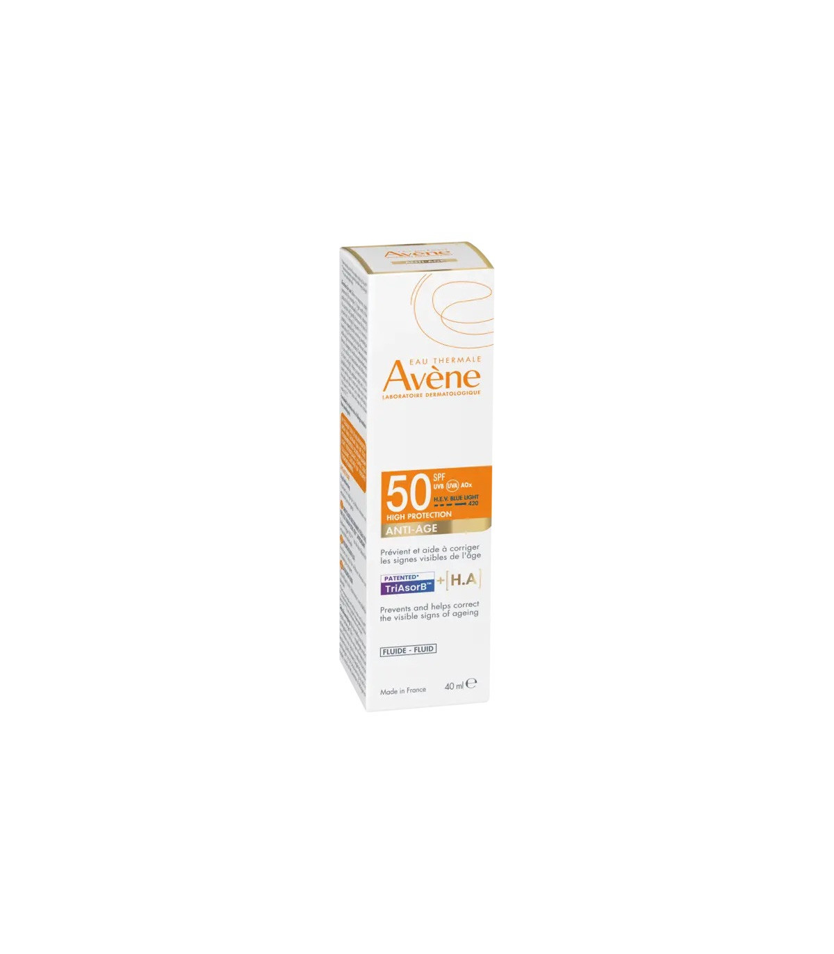 Protector solar antiedad de alta protección SPF50 con textura fluida y ligera. Hidrata, reduce arrugas y mejora la firmeza. Apto para pieles sensibles.