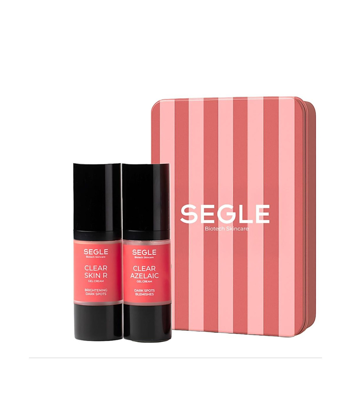 Cofre despigmentante con Gel Crema Clear Azelaic, Clear Skin R y Sérum Glicolmix para manchas, acné, rosácea y luminosidad de la piel.