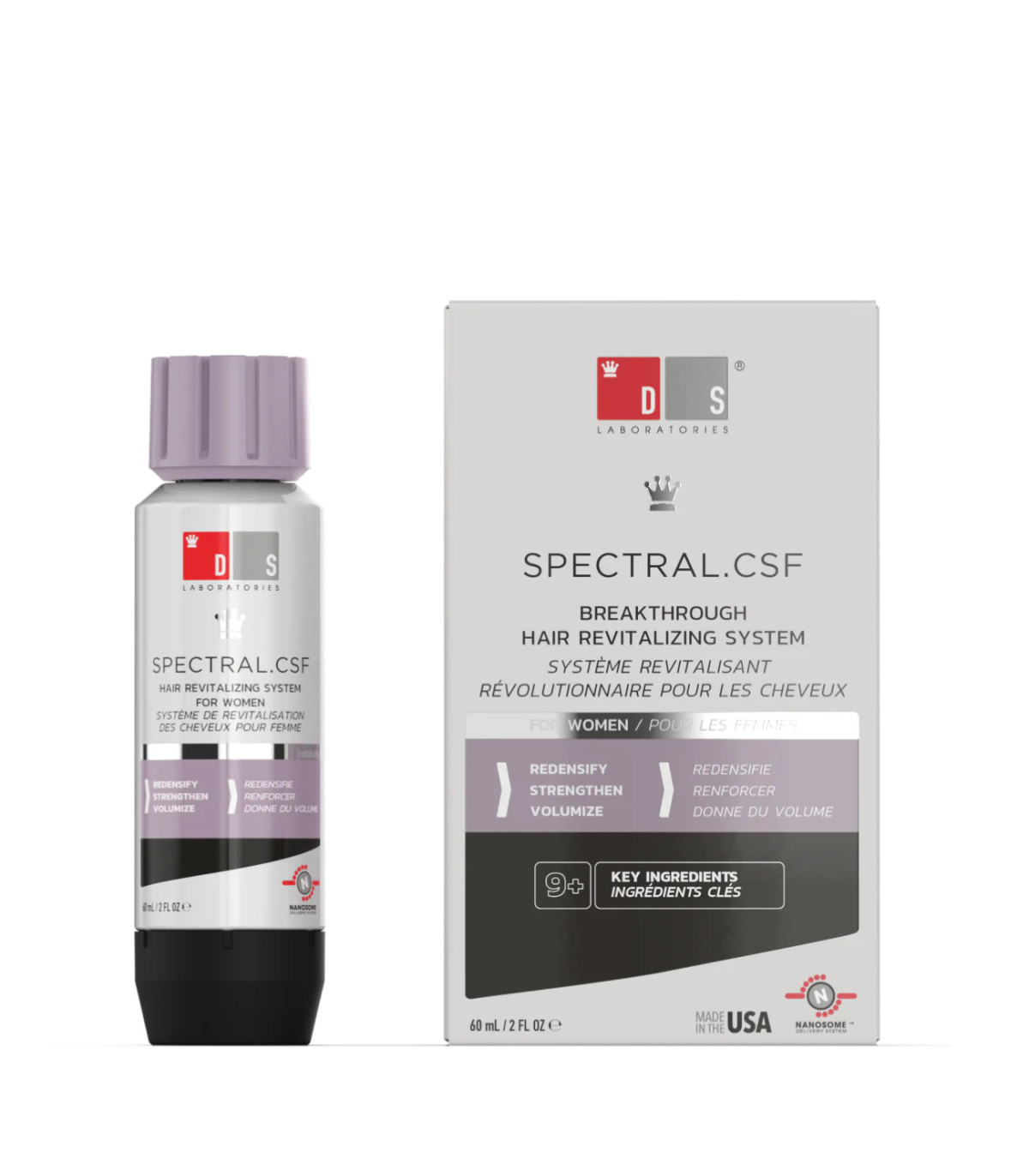 Tras años de investigación, DS Laboratories® aborda este problema con Spectral.CSF, un tratamiento innovador, revitalizante y anticaída que ayuda a las mujeres a conseguir un cabello con más cuerpo y volumen. Las mujeres preocupadas por la pérdida difusa, el debilitamiento, el cabello frágil o la alopecia androgénetica (calvicie de patrón femenino) eligen este tratamiento anticaída para estimular el folículo piloso con una fórmula cosmética que no deja residuos.