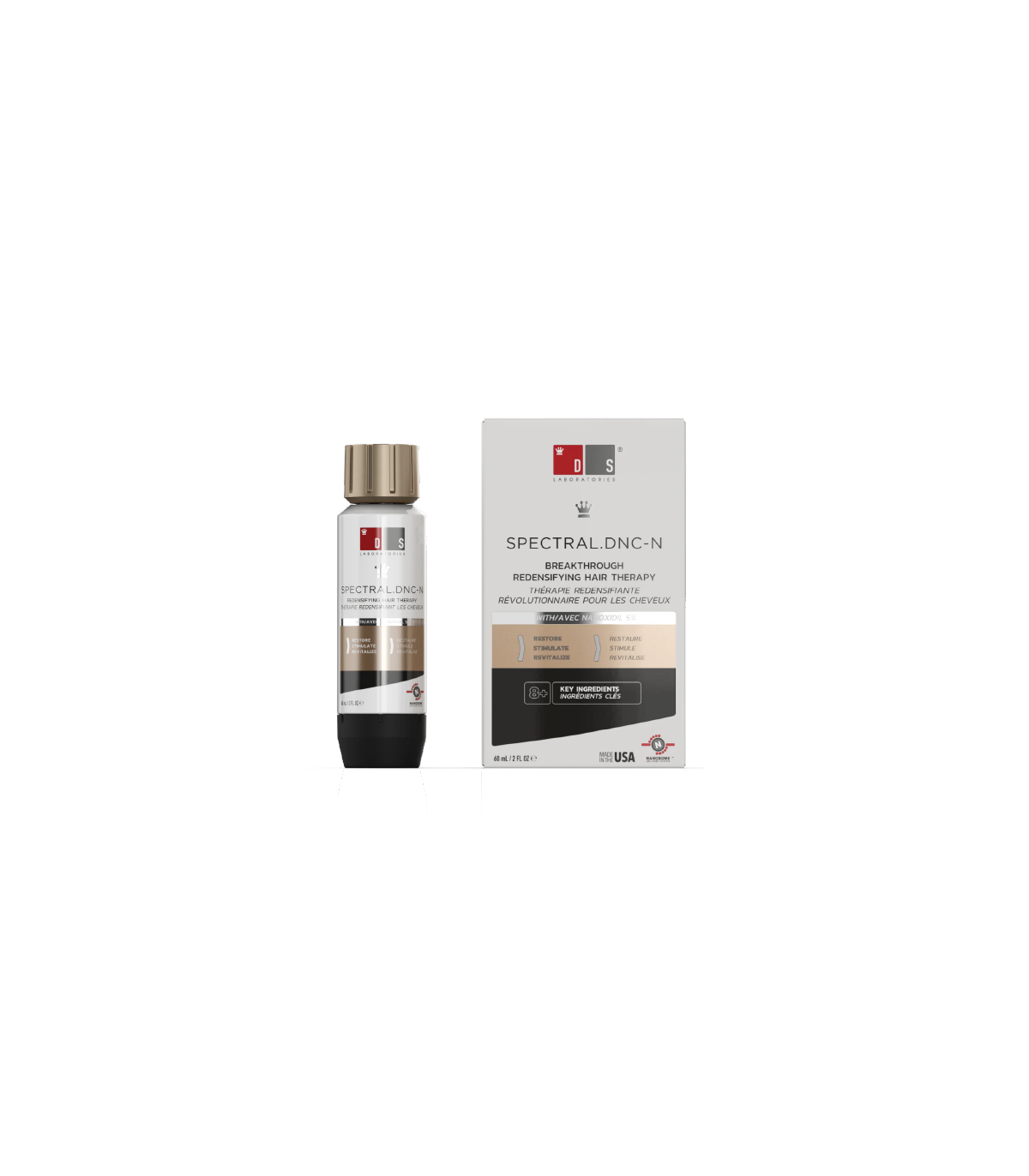 Spectral.DNC-N es el primer tratamiento tópico con Nanoxidil 5%, una potente alternativa al minoxidil, que evita la caída del cabello y promueve su crecimiento en hombres y mujeres.